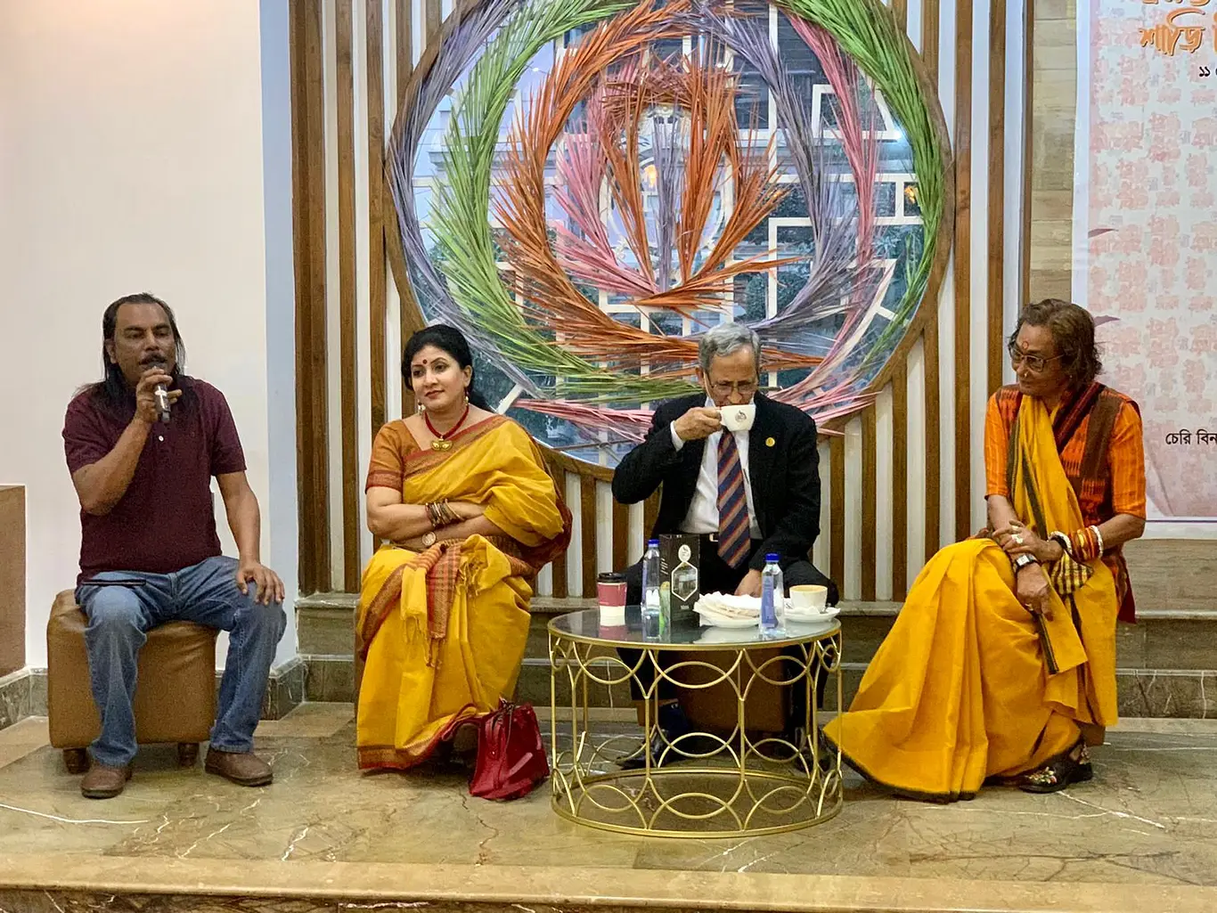 গুলশানের ২৭ নম্বর বাড়িটা আসলে একটা কফি শপ, নাম চেরিবিন। সেখানেই রঙিন জামাকাপড় পরে এসেছে সবাই। নারীদের বেশির ভাগেরই পরনে শাড়ি। থাকবে নাই-বা কেন, শাড়িকে ঘিরেই যে আয়োজন। পয়লা ফাল্গুন, ভালোবাসা দিবস সামনে রেখে শাড়ি নিয়ে আড্ডা দিতেই এই উদ্যোগ। এখানে-সেখানে জড়ো হয়ে আমন্ত্রিত অতিথিরা ধোঁয়া ওঠা কফির মগ হাতে আড্ডা দিচ্ছেন।